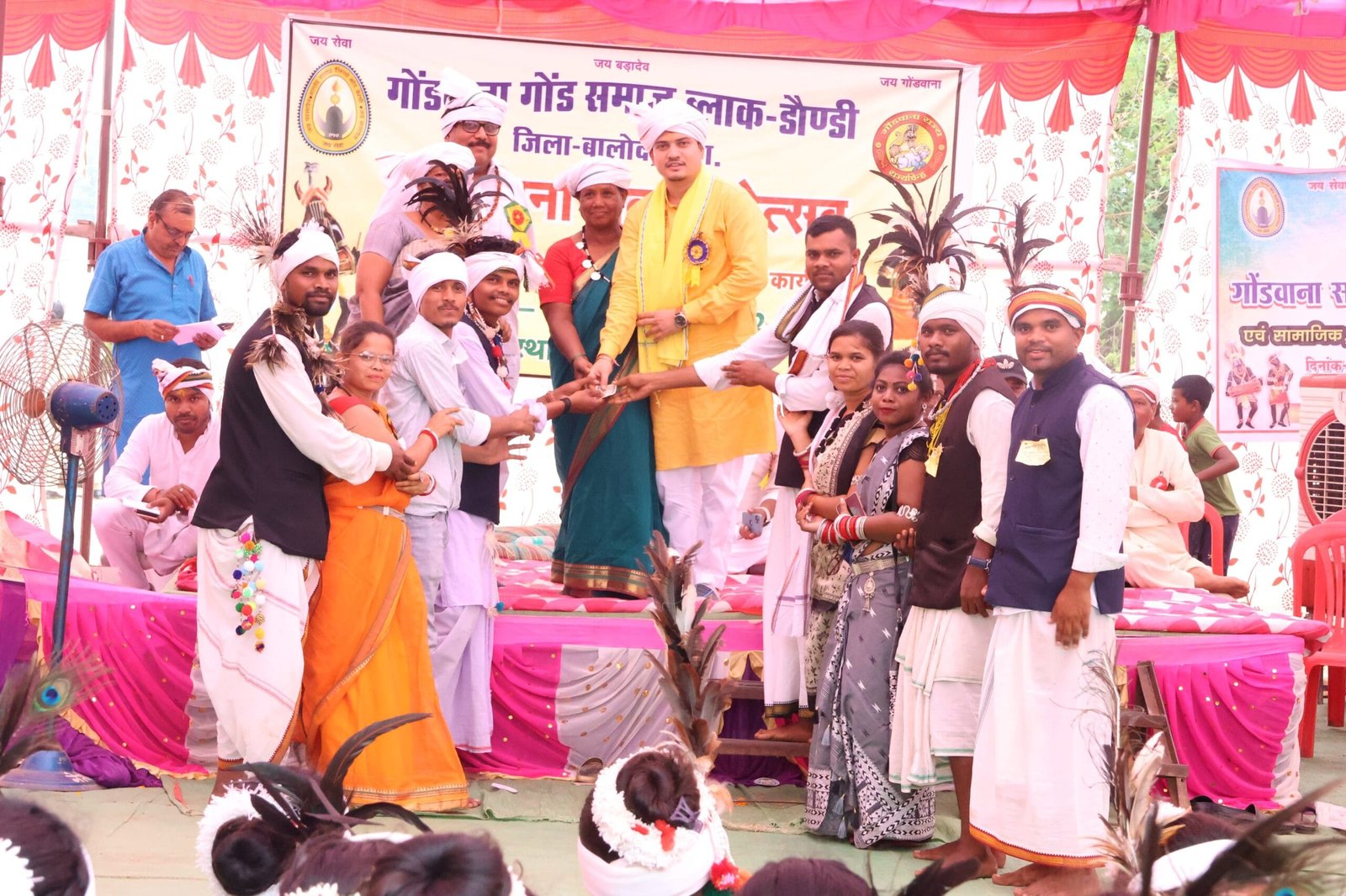 बालोद जिले के डौण्डी विकासखण्ड के सुदुर वनांचल के ग्राम बेलोदा में ब्लाॅक गोंडवाना समाज द्वारा आयोजित दो दिवसीय गोंडवाना युवा महोत्सव एवं सामाजिक, सांस्कृतिक, शैक्षणिक कार्यशाला में डोंडी लोहारा के युवराज लाल निवेंद्र सिंह टेकाम , मुख्यमंत्री के निज सहायक तुलसी कौशिक के साथ शामिल हुए। इस दौरान जब वे गांव पहुंचे तो वहां के सामाजिक जनों ने उनका पारंपरिक तरीके से आदिवासी नृत्य के साथ स्वागत सम्मान किया। इस बीच समाज और ग्रामीणों ने उनके पिता पूर्व विधायक ,आदिवासी कद्दावर नेता स्वर्गीय लाल महेंद्र सिंह टेकाम और माता पूर्व विधायक नीलिमा सिंह टेकाम को भी याद किया। आयोजन के मुख्य अतिथि प्रदेश के वन, जलवायु परिवर्तन एंव जल संसाधन मंत्री श्री केदार कश्यप थे। कार्यक्रम की अध्यक्षता गोंडवाना समाज के ब्लाॅक अध्यक्ष श्री आत्माराम कौर ने किया। विशेष अतिथि के रूप में राज्य अनुसूचित जनजाति आयोग के पूर्व उपाध्यक्ष श्री विकास मरकाम, पूर्व विधायक श्री ब्रम्हानंद नेताम, नगर पंचायत डौण्डी के अध्यक्ष श्री सोमेश सोरी, श्री मोहन हिड़को, श्री तुलसीराम मरकाम, श्री गंगाराम दर्राे, श्रीमती अनिता कुमेटी एवं अन्य सामाजिक प्रमुखों के अलावा कलेक्टर श्री इंद्रजीत सिंह चंद्रवाल, पुलिस अधीक्षक श्री सुरजन राम भगत एवं अन्य अतिथिगण उपस्थित थे। इस अवसर पर मंत्री श्री कश्यप ने ग्राम बेलोदा में गोंडवाना भवन के निर्माण हेतु 25 लाख रूपये एवं डौण्डी विकासखण्ड को बस्तर विकास प्राधिकरण में जोड़ने की घोषणा भी की है। इसके अलावा उन्होंने मुख्यमंत्री श्री विष्णुदेव साय से चर्चा कर ग्राम बेलोदा में अंग्रेजी माध्यम स्कूल एवं प्राथमिक स्वास्थ्य केन्द्र खोलने तथा ग्राम बेलोदा में सड़क निर्माण हेतु आवश्यक कार्यवाही करने का आश्वासन भी दिया। साथ ही डौण्डी विकासखण्ड को बस्तर विकास प्राधिकरण में जोड़ने का आश्वासन दिया है। इस आश्वासन के लिए युवराज लाल निवेंद्र सिंह टेकाम ने मंत्री केदार कश्यप सहित छत्तीसगढ़ सरकार का आभार जताया। कार्यक्रम में गोंडवाना समाज के युवा-युवतियों के द्वारा गोंडवाना संस्कृति पर आधारित सांस्कृतिक कार्यक्रमों की भी प्रस्तुति दी गई। जो आकर्षण का केंद्र रही। इस बीच समाज के कलाकारों के साथ युवराज ने तस्वीर भी खिंचवाई।