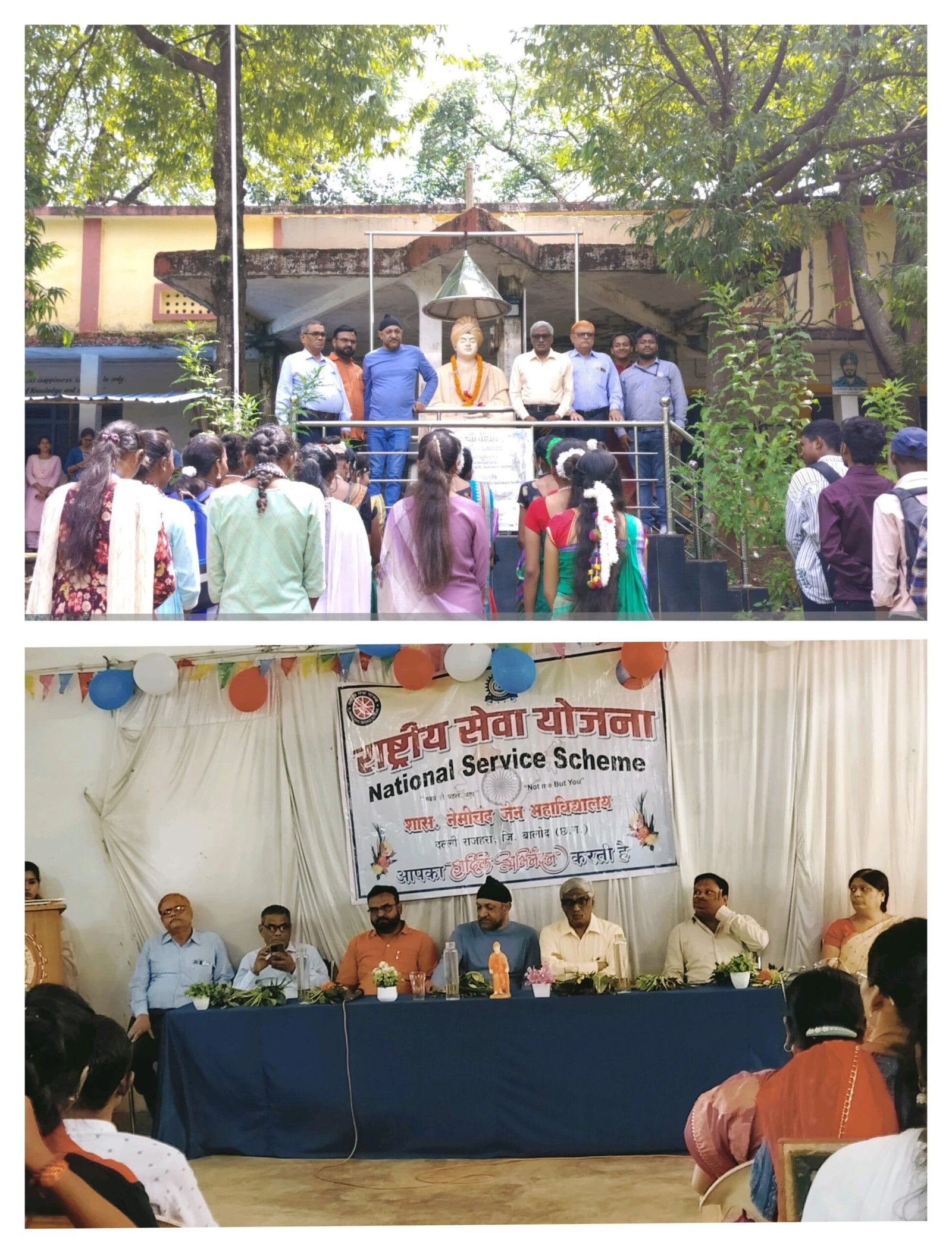 प्राचार्य ने अपने उद्बोधन में बताया कि किसी महाविद्यालय में राष्ट्रीय सेवा योजना इकाई का होना उसे विशेष बनाता है, युवाओं के सर्वांगीण विकास के लिए इस तरह की योजना का होना अत्यंत आवश्यक है। मुख्य अतिथि ने पढ़ाई के साथ साथ अन्य गतिविधियों का महत्व बताया व एनएसएस हेतु जनभागीदारी द्वारा किसी भी तरह के सहयोग का आश्वासन दिया गया। कार्यक्रम अधिकारी ने राष्ट्रीय सेवा योजना की पृष्ठभूमि पर प्रकाश डालते इसके अंतर्गत वर्ष भर होनें वालीविभिन्न गतिविधियों जैसे स्वच्छता अभियान, पौधारोपण, जागरूकता रैली, समाज सेवा और सात दिवसीय विशेष शिविर के बारे में अपने विचार व्यक्त किए, इसके उद्देश्य पर प्रकाश डालते हुए उन्होंने बताया कि समाज सेवा के माध्यम से छात्रों का व्यक्तित्व विकास करना हीं एनएसएस का प्रमुख उद्देश्य है। कार्यक्रम में एनएसएस के छात्रों द्वारा रंगारंग एवं मनमोहक सांस्कृतिक नृत्य की प्रस्तुति दी गई, इस दौरान महाविद्यालय के समस्त अधिकारी, कर्मचारी सहित बहुतायत में विद्यार्थियों की उपस्थिति रही। कार्यक्रम को सफल बनाने में कार्यक्रम अधिकारी सहित महाविद्यालय के प्राचार्य अरूण कुमार वी., प्राध्यापक डॉ. डी.आर. साहू, डॉ. पी.के. सिंह, डॉ. कविता सिंह, डॉ.अनुग्रहिता जॉन, डॉ. सरिता स्वामी, डॉ. प्रवीण गुप्ता, दिनेश माखीजा, राकेश कोठरी, डॉ देवदत्त शर्मा, यामिनी देवी, ओमेश्वरी मंडावी, किशोर पटेल, कमल बोदले, श्री मोहन निषाद, शिकलेश नुरूटी, योगेश साहू, सुश्री रेणुका, सुश्री नीमा मानिकपुरी, सुश्री सौम्या तिवारी की भूमिका रही, साथ ही रासेयो इकाई के दलनायक, दलनायिका और कार्यक्रम में सक्रिय रूप से भाग लेने वाले सभी स्वयंसेवकों एवं उपस्थित सभी के प्रति आभार एन एस एस अधिकारी ने व्यक्त किया।