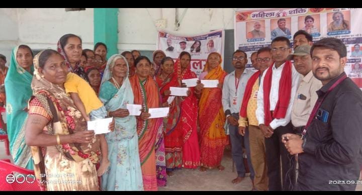 महिला शक्ति सेवा संस्था के द्वारा ग्राम सुरडोंगर में विधवा माताओं को किया गया पेंशन वितरण।