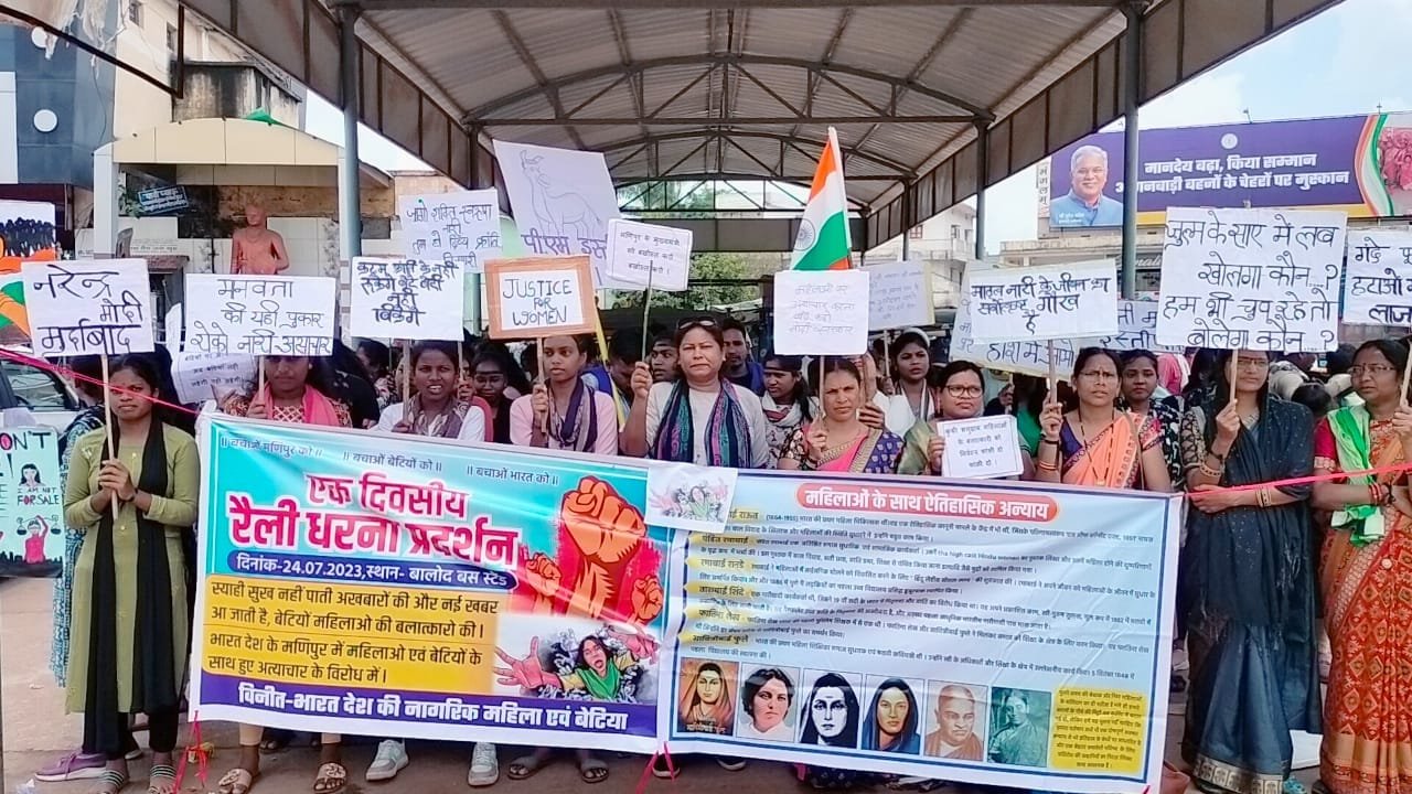 यह 4 मई की घटना है जो सोशल मीडिया द्वारा 19 जुलाई को पता चला यह पूरे भारत की महिलाओं और बेटी आज उस वीडियो को देख कर शर्मिन्दा महसूस कर रहे है और भारत की बेटी होने में शर्म महसूस कर रहे हैं इस लिए उनके इंसाफ के लिए बालोद जिले की सैकड़ों महिलायें व बेटी ने मणिपुर के मुख्यमंत्री और केंद्र सरकार के विरोध में नारा लगाते हुए बेटियों ने विरोध जताया और उनके साथ हुए शोषण करने वाले वालो को सड़क पर निःवस्त्र कर फांसी की सजा की मांग की है और संविधान की धारा 356 राष्ट्रपति शासन लागू करने के लिए मणिपुर के राज्यपाल और मुख्यमंत्री से महिलाओं और बेटियों ने अनुरोध जताया इसको लेकर बालोद जिले के जिलाधीश को महामहिम राष्ट्रपति , प्रधानमंत्री,गृहमंत्री, मणिपुर के मुख्यमंत्री व राज्यपाल, के नाम से ज्ञापन सौंपा गया । इस दौरान सहिस्ता शेख,(बालोद), आशा नोहरे,प्रतिभा विश्कर्मा, मनीषा राणा, निधि हर्षपाल(राजनंदगांव),डिंपल उइके,अंजली शोरी,(डोंडी) मंजू प्राभकर,कमलेश्वरी तोपा, रूबी भुआर्य, समस्त समुदाए की महिलाएं एवं बेटियां उपस्थित थी।