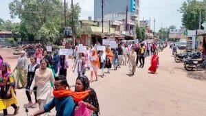 भास्कर न्यूज 24/वीरेन्द्र भारद्वाज/दल्लीराजहरा- बालोद। बालोद के बस स्टेशन में मणिपुर में कुकी समुदाय के साथ हो रहे घटित घटना जो सोशल मीडिया द्वारा जिस तरह से वीडियो सामने आई है कि पुरुषों द्वारा कुकी जनजाति की महिलाओं को 800 से ज्यादा पुरुषों द्वारा सड़कों पर रेप कर निर्वस्त्र परेड कराया गया।