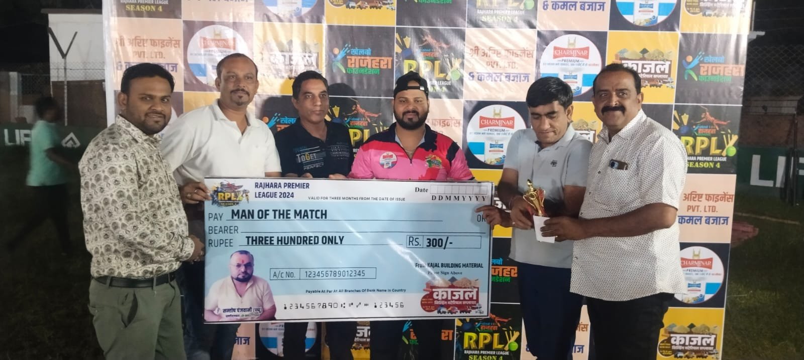 खेलबो राजहरा फाउंडेशन के द्वारा आयोजित राजहरा प्रीमियर लीग सीजन 4 के आयोजन में कल तीसरे दिन का पहला मैच स्काई राइडर और थंडर थ्री के मध्य खेला गया।स्काई राइडर ने पहले बल्लेबाजी करते हुए निर्धारित 10 ओवर में 84 रन बनाए 7 विकेट खोकर वही 84 रन का पीछा करते हुए थंडर थ्री ने 9.3 ओवर में 85 रन मात्र 6 विकेट के नुकसान पर बना लिए और इस मैच को थंडर थ्री 4 विकेट से जीत लिया थंडर थ्री के लेखु ने 6 बॉल पर 26 रन बनाए साथ ही अपने किफायती 2 ओवर में 1 विकेट भी लिया,इस अच्छे प्रदर्शन को देखते हुए लेखु को मैन ऑफ द मैच का पुरुस्कार दिया गया।।