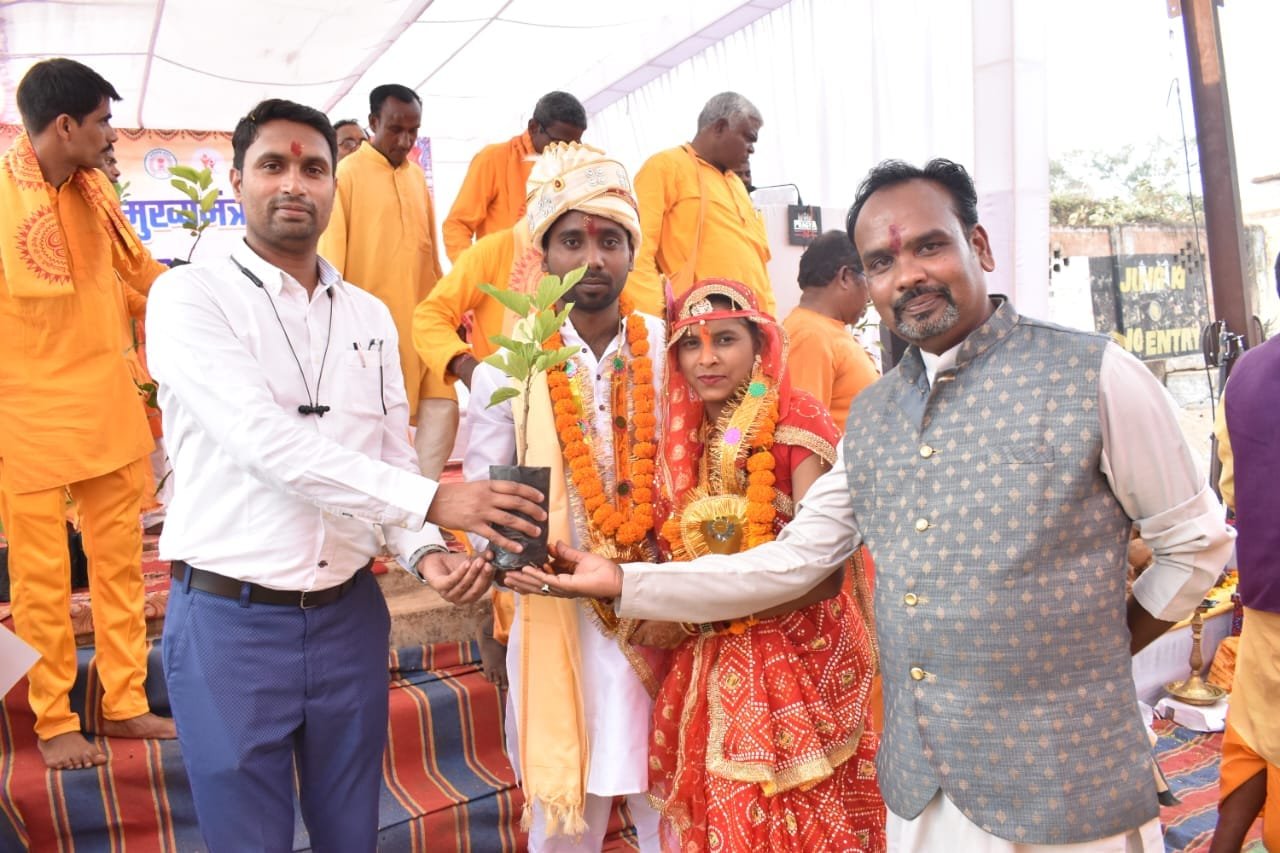 कुसुमकसा में मुख्यमंत्री कन्या विवाह योजना के तहत 74 जोड़ा का हुआ विवाह , जनपद सदस्य संजय बैस शामिल हुए, आशीर्वाद में दिए पौधा।