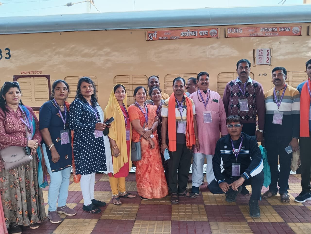 भास्कर न्यूज24/वीरेंद्र भारद्वाज/दल्लीराजहरा। अयोध्या में श्रद्धालुओं को प्रभू श्री राम की दर्शन कराने के लिए छत्तीसगढ़ शासन के द्वारा दुर्ग से आस्था स्पेशल ट्रेन भक्तों के लिए प्रारंभ की गई हैं l जिसमे हिंदू संगठन से जुड़े राष्ट्रीय स्वयंसेवक संघ विश्व हिंदू परिषद, भारतीय जनता पार्टी के कार्यकर्ता भी अयोध्या धाम प्रभु राम के दर्शन के लिए जा रहे हैं जिसमे बालोद जिला से 15 लोग अयोध्या में रामलला के दर्शन के लिए गए । बालोद जिला अध्यक्ष बलराम गुप्ता , राजेश सोनी जिला मंत्री नीलेश श्रीवास्तव जिला चोलेश देशमुख उपाध्यक्ष, दल्ली राजहरा नगर अध्यक्ष शंकर साहू,वा ज़िला सत्संग प्रमुख बोधन भट्ट सहित बालोद जिला के साथ विभिन्न स्थानों से रामलला दर्शन के लिए स्पेशल ट्रेन से अयोध्या गए l 500 वर्षों के संघर्ष के बाद 22 जनवरी को अयोध्या में रामलाल की स्थापना हुई इस मौके पर सनातनियों में काफी उत्साह व हर्ष देखा गया,,, स्थापना के पश्चात ही लगातार अयोध्या में रामलला के दर्शन के लिए लोगों का जाना लगा हुआ है,, इसी कड़ी में आज विश्व हिंदू परिषद द्वारा आस्था स्पेशल ट्रेन के द्वारा सभी राम भक्तों को लेकर दुर्ग रेलवे स्टेशन से अयोध्या के लिए निकली,, दुर्ग रेलवे स्टेशन में इस ट्रेन के लिए स्पेशल व्यवस्था की गई थी साथ ही पुलिस बल द्वारा सुरक्षा के भी काफी कड़े इंतजाम किए गए थे ट्रेन के अंदर किसी भी व्यक्ति को बिना टिकट घुसने नहीं दी गया,, इस ट्रेन के अंदर भी काफी अच्छी व्यवस्था रखी गई है।