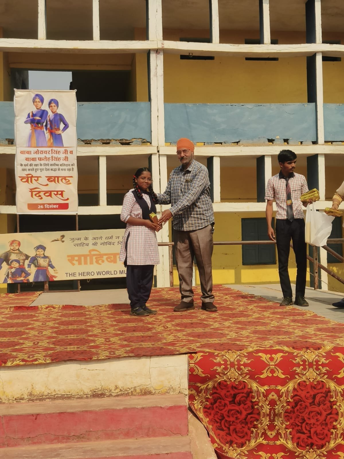 श्री गुरुनानक उच्चतर माध्यमिक विद्यालय में 26 दिसंबर को दसवें सिख गुरु ,गुरु गोविंद सिंह जी के चार पुत्रों साहीबजादो बाबा अजीत सिंह, बाबा जुझार सिंह बाबा जोरावर सिंह ,बाबा फतेह सिंह जी के शहादत की स्मृति में श्रद्धांजलि अर्पित कर “वीर बाल दिवस” के रूप में मनाया गया जिसमे शाला शिक्षण समिति के सदस्य एवम शाला के समस्त शिक्षकगण उपस्थित थे,