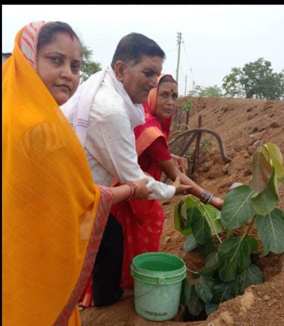 पिता के जन्मदिन पर शिक्षिका बेटी ने लगाया बरगद का पौधा, संरक्षण का भी संकल्प।