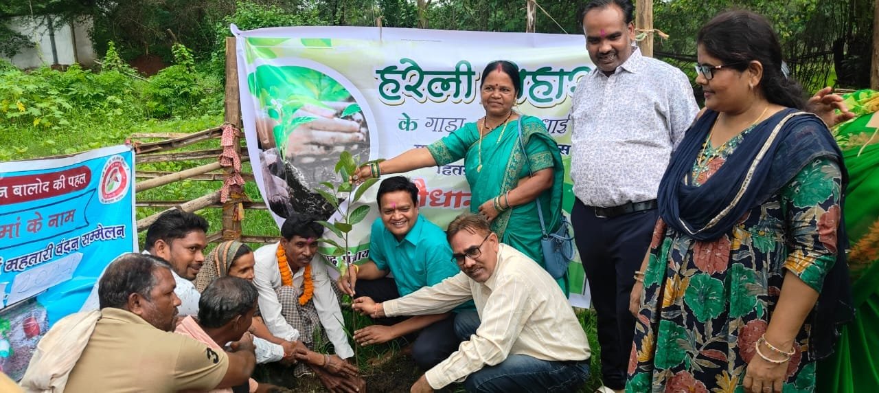 ग्राम कुसुमकसा में प्रधानमंत्री आवास योजना एवं महतारी वंदन लाभार्थियों के घर किया गया वृक्षारोपण।