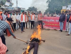 आक्रोश रैली निकालकर विश्व हिंदू परिषद और बजरंग दल भाइयों ने फूंका इस्लामिक जिहादियों का पुतला।