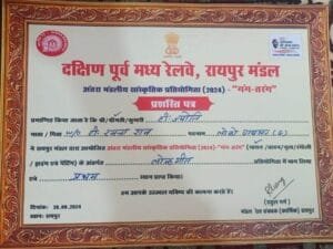 दक्षिण पूर्व मध्य रेलवे रायपुर मंडल द्वारा आयोजित अंतरा मंडलीय सांस्कृतिक प्रतियोगिता 2024 का आयोजन किया गया । जिसमे छत्तीसगढ़ रत्न से सम्मानित टी ज्योति द्वारा चौरामा गोंदा व पता लेजा छत्तीसगढ़ी लोकगीत गाकर समा बांधा व लोकगीत की विजेता घोषित हुई ।
