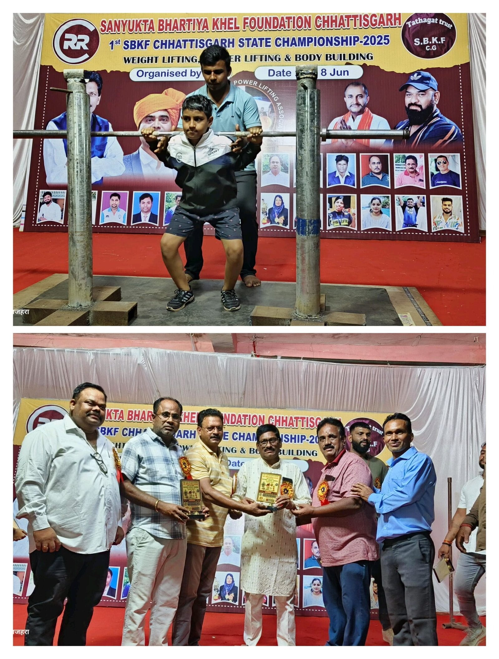 भास्कर न्यूज़ 24 /वीरेंद्र भारद्वाज/दल्लीराजहरा। संयुक्त भारतीय खेल फाउंडेशन छत्तीसगढ़ के तत्वावधान में प्रथम छत्तीसगढ़ राज्य चैंपियनशिप वेटलिफ्टिंग,पावर लिफ्टिंग एवं बॉडी बिल्डिंग प्रतियोगिता का आयोजन 7 व 8 जून को नगर पालिका अध्यक्ष तोरण लाल साहू के मुख्य आतिथ्य में किया गया। ब्राह्मण समाज भवन में आयोजित इस अवसर के विशेष अतिथि छत्तीसगढ़ श्रमजीवी पत्रकार संघ के जिला अध्यक्ष वीरेंद्र भारद्वाज, उपाध्यक्ष नरेंद्र खोब्रागड़े, अंतरराष्ट्रीय महिला खिलाड़ी कमला देवी,रामाज्ञा यादव,अभिमन्यु भगत,सन्तोष कुमार साहू,डोमेंद्र कुमार अलेन्द्र,देवेंद्र यादव,नरेन्द्र साहू,खुशबू नाग,जोगेंद्र ठाकुर,मार्तण्ड सिंह तथा अध्यक्षता संयुक्त भारतीय खेल फाउंडेशन छत्तीसगढ़ के अध्यक्ष विशाल मोटवानी ने की।