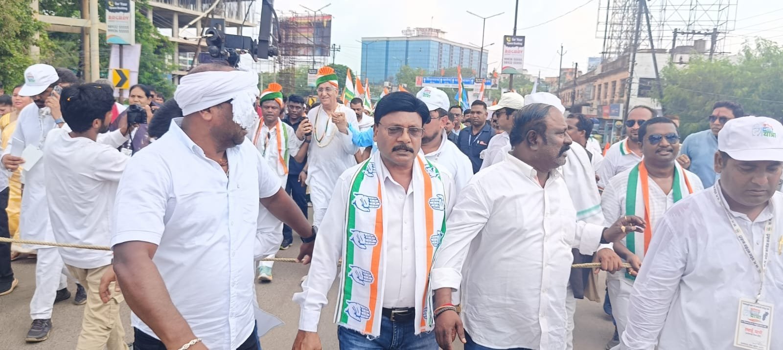 भास्कर न्यूज 24/वीरेंद्र भारद्वाज/दल्लीराजहरा । भारतीय जनता पार्टी के 9 माह के कार्यकाल में राज्य में बढ़ते अपराध, कुशासन, अन्याय, दमनकारी नीति एवम् भ्रष्टाचार के खिलाफ छत्तीसगढ़ प्रदेश कांग्रेस कमेटी के अध्यक्ष दीपक बैज के द्वारा 27 सितंबर से गिरोधपुरी धाम से न्याय पदयात्रा प्रारंभ किया गया था। जिसका समापन 2 अक्टूबर को सड्डू से प्रारंभ कर गांधी मैदान पुराना कांग्रेस भवन में विशाल रैली के साथ पहुंच कर आमसभा का आयोजन किया गया और न्याय पदयात्रा का समापन किया गया।डोंडी लोहारा विधानसभा की विधायक अनिला भेड़िया के मार्गदर्शन में दल्ली राजहरा के कांग्रेस जन सड्डू से लेकर गांधी मैदान तक न्याय पदयात्रा में शामिल हुए।इस अवसर पर अध्यक्ष ब्लॉक कांग्रेस कमेटी अशोक बांबेश्वर, अध्यक्ष नगर पालिका परिषद शिबू नायर, महामंत्री ब्लॉक कांग्रेस कमेटी विवेक मसीह, जिला संयुक्त महामंत्री विजय जोगदंड, जिला अध्यक्ष झुग्गी झोपड़ी प्रकोष्ठ प्रदीप बबलू, अध्यक्ष नगर मजदूर कांग्रेस समस्या निवारण रामकुमार शर्मा, सचिव ब्लॉक कांग्रेस कमेटी बसंत साहू शामिल हुए।
