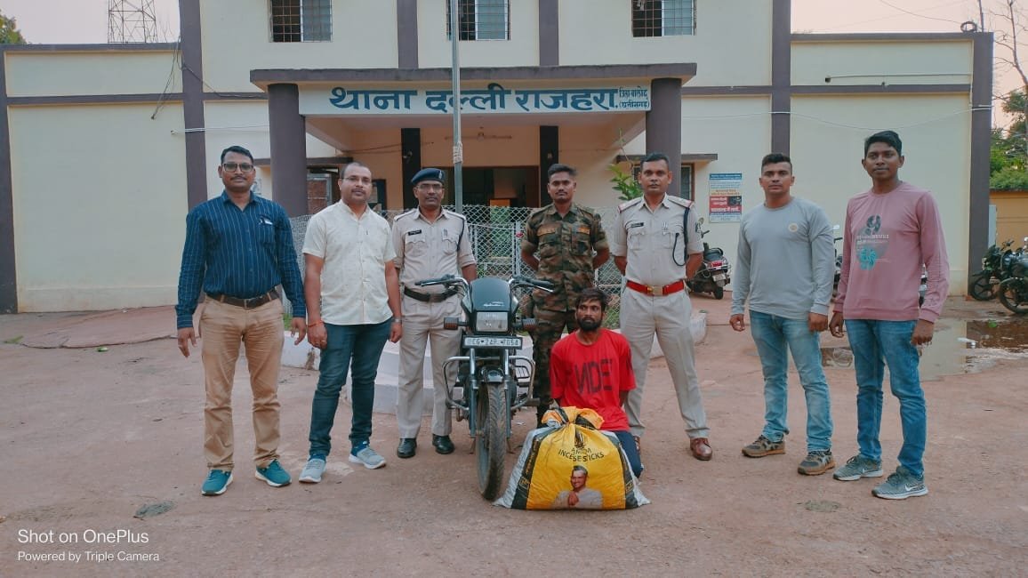 भास्कर न्यूज 24/वीरेन्द्र भारद्वाज/ दल्लीराजहरा । पुलिस अधीक्षक डॉ जितेन्द्र कुमार यादव के निर्देशन एवं अतिरिक्त पुलिस अधीक्षक सुशील कुमार नायक के मार्गदर्शन पर व नगर पुलिस अधीक्षक राजहरा कर्ण कुमार उके के पर्यवेक्षण में जिला बालोद के समस्त थाना/चौकी क्षेत्र के अवैध कारोबार गांजा,जुआ, सटटा व अवैध शराब के विरूद्ध कार्यवाही हेतू थाना /सायबर सेल टीम को निर्देशित किया गया था जिस पर सायबर सेल ने रवि सिंह टेबलर सेट वार्ड क्र 04 को 9 किलोग्राम गांजा सहित गिरफ्तार किया गया है।