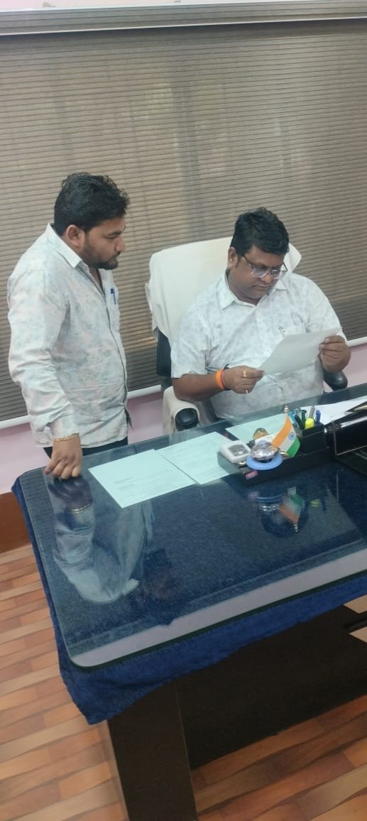 वार्ड नं. 25, न्यू मार्केट में हुए नये बोर में पम्प लगाकर विद्युत कनेक्शन एवं पाईप लाईन विस्तारीकरण करने की मांग को लेकर वार्ड पार्षद प्रमोद कुमार रात्रे ने मुख्य नगर पालिका अधिकारी को सौपा ज्ञापन।