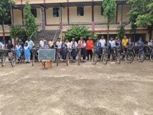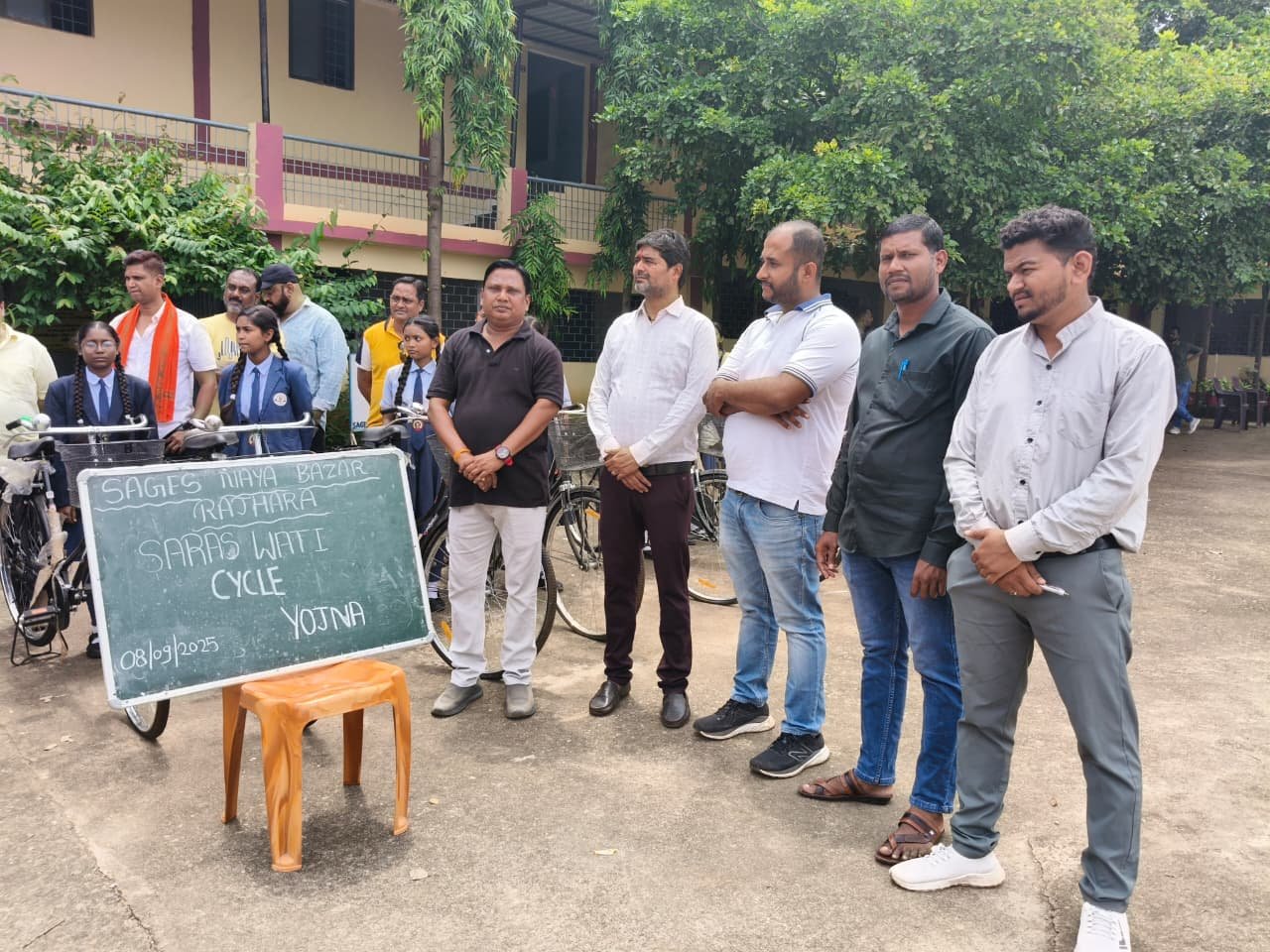 छत्तीसगढ़ शासन स्कूल शिक्षा विभाग द्वारा नि:शुल्क सरस्वती साइकिल योजना के अंतर्गत सन् 2025_26 कक्षा नवमी में अध्यनरत नव प्रवेशित बालिकाओं को अनुसूचित जाति वर्ग से 13 साइकिल जनजाति वर्ग से 14 साइकिल पिछड़ा वर्ग एवं सामान्य वर्ग में 16 कुल 43 बालिकाओं को साइकिल वितरित किया गया l कार्यक्रम में नगर पालिका अध्यक्ष श्री तोरण लाल साहू उपाध्यक्ष श्री मनोज दुबे श्री रमेश गुजर अध्यक्ष (SMDC) श्री सौरभ लूनिया महामंत्री जिला बालोद श्री रामेश्वर साहू मंडल अध्यक्ष श्री राकेश द्विवेदी पूर्व मंडल अध्यक्ष श्रीमती अरुणा रामटेके पार्षद वार्ड क्रमांक 18 श्री संजीव सिंह पार्षद वार्ड क्रमांक 4 श्री विशाल मोटवानी पार्षद वार्ड क्रमांक 24 श्री तरुण साहू पार्षद वार्ड क्रमांक 15 श्री सुरेश जायसवाल पार्षद वार्ड क्रमांक 22 श्री प्रमोद रात्रे वार्ड पार्षद वार्ड क्रमांक 25 मेवा पटेल पार्षद वार्ड क्रमांक 9 टी,ज्योति पार्षद वार्ड क्रमांक 26 मुकेश खस,समर्थ लखानी, संस्था प्रमुख श्री टी ,आर,रानाडे एवं समस्त शाला परिवार उपस्थित थे lइस महत्वाकांक्षी योजना की सराहना करते हुए नगर पालिका अध्यक्ष ने अपने उद्बोधन में कहा कि इस योजना में एससी एसटी वर्ग के बालिकाओं के लिए जाति प्रमाण पत्र तथा पिछड़ा एवं सामान्य वर्ग की बालिकाओं के लिए गरीबी रेखा प्रमाण पत्र के आधार पर पात्रता होती है l यह योजना बालिकाओं के स्कूल आने जाने में सुविधा प्रदान करने हेतु लागू किया गया है l छात्राओं में शिक्षा को बढ़ावा देने में प्रेरणा मिलती है।