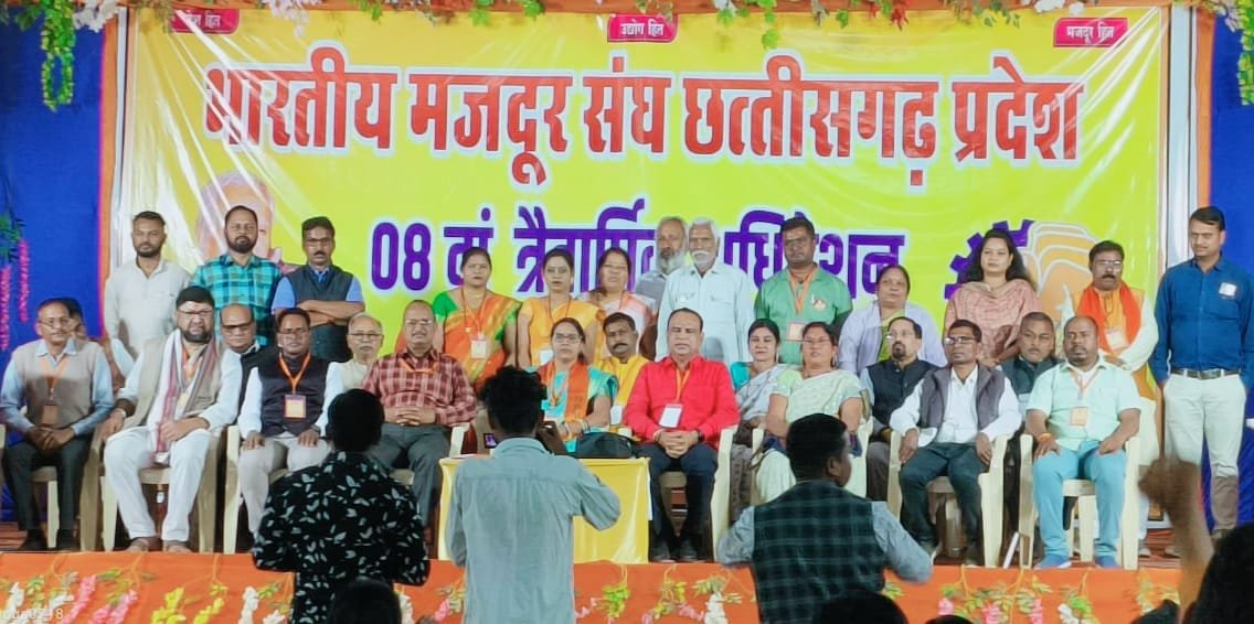 बीएसपी ओपन एयर थिएटर में भारतीय मजदूर संघ के छत्तीसगढ़ प्रदेश का आठवां त्रै-वार्षिक अधिवेशन भारतीय मजदूर संघ जिला बालोद और खदान मजदूर संघ भिलाई के संयुक्त तत्वाधान में हुआ संपन्न।