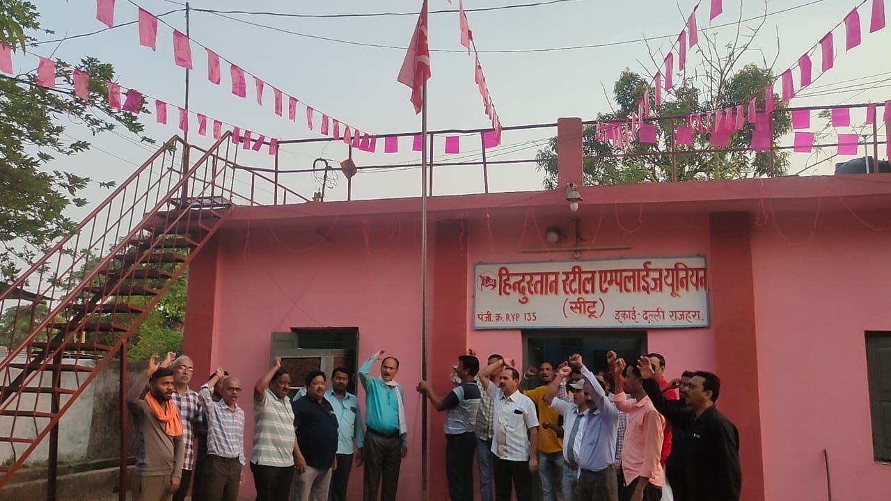 1 मई मजदूर दिवस के अवसर पर हिन्दुस्तान स्टील एम्पलाइज यूनियन सीटू राजहरा के तत्वावधान में खदान श्रमिकों ने पूरे जोश खरोश से मजदूर दिवस मनाया । यूनियन के निर्धारित कार्यक्रम के अनुसार प्रातः 5.30 बजे माइंस आफिस के सामने, तथा 6.00 बजे यूनियन कार्यालय में ध्वजारोहण किया गया ।