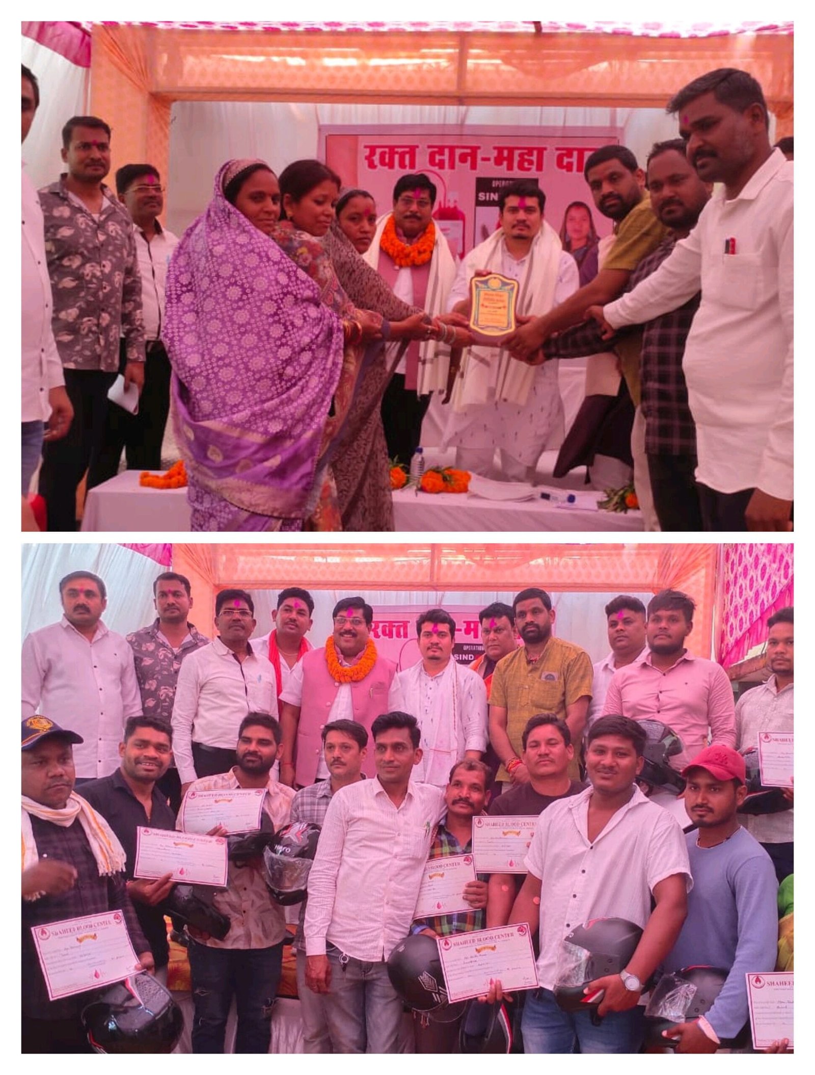 भास्कर न्यूज़ 24/ वीरेंद्र भारद्वाज/ कुसुमकसा। आपरेशन सिंदूर की सफलता पर भारत देश की सेना पर गर्व महसूस करते भाजपा मंडल कुसुमकसा व सरपंचों के तत्वाधान में 23 मई को विशाल रक्तदान शिविर में 180 रक्त वीरों ने रक्तदान कर बालोद जिला में इतिहास रच दिया , वही 417 महिला पुरुषो व युवाओं ने ब्लड ग्रुप व शरीर में खून की मात्रा की जांच कराई तो रक्तदान करने में छात्राओं और युवतियों ने भी सहभागिता दर्ज कराई ,जिसको देखकर लगा की रक्तदान करने आमजन में जागरूकता आई है वही डी बी ग्रुप दल्लीराजहरा द्वारा सभी रक्तवीरो को हेलमेट व प्रमाणपत्र देकर सम्मान करते हुए दो पहिया वाहन चलाते समय हेलमेट का उपयोग करने की सलाह दी।