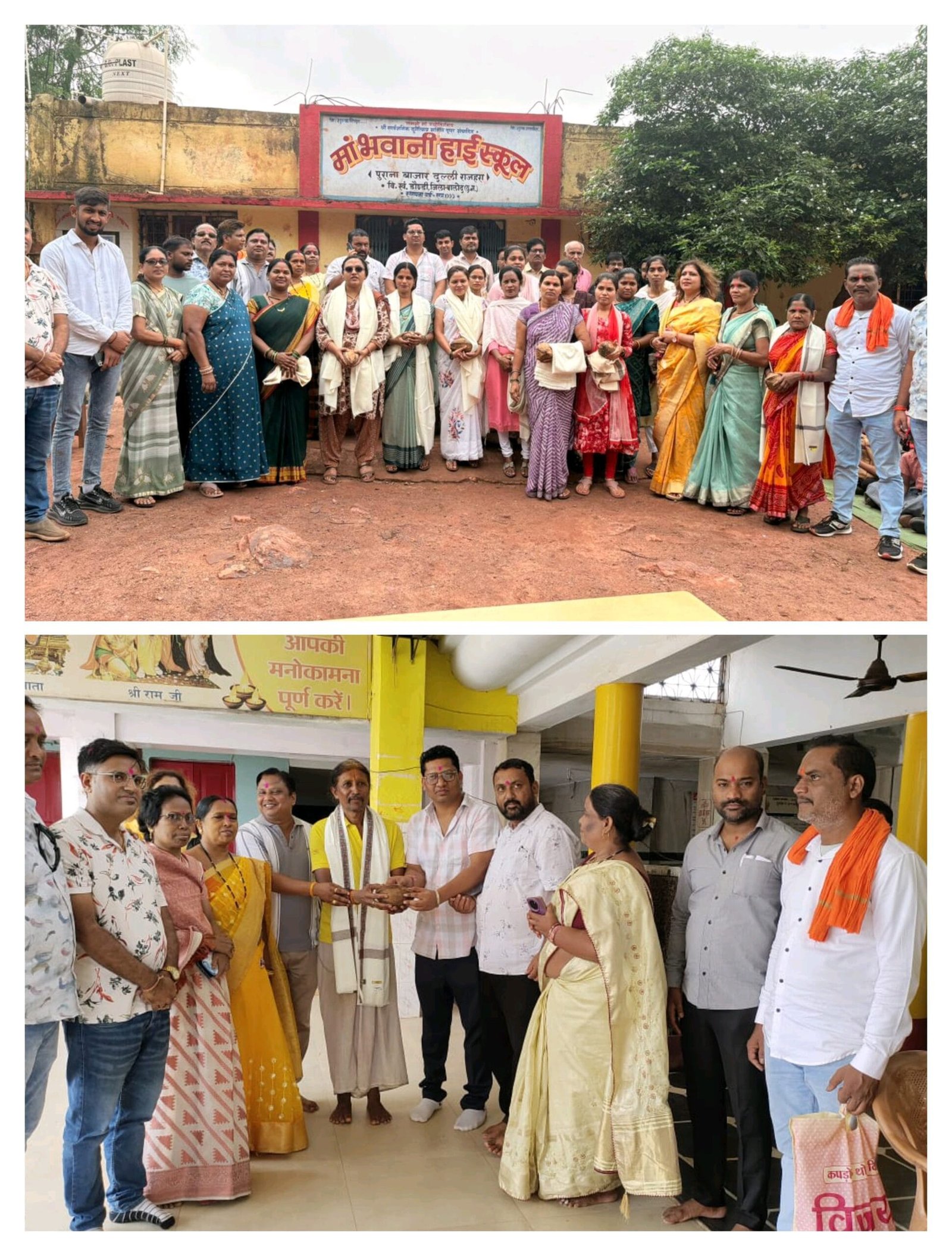 तत्पश्चात नगर के दुर्गा मंदिर पुजारी बाबा एवं श्री राम मंदिर पहुंचकर पुजारी जी का शौल श्रीफल से सम्मान की गई। समस्त कार्यक्रम में जिला मंत्री राजेश दसोंडे, नगर पालिका अध्यक्ष तोरण साहू , उपाध्यक्ष मनोज दुबे,मंडल अध्यक्ष रामेश्वर साहू, मंडल महामंत्री रमेश गुजर, कोषाध्यक्ष कैलाश छाजेड़ मंडल उपाध्यक्ष मुकेश खस, गीता मरकाम , विनय सिंग मंडल मंत्री समर्थ लखानी, सुनीता भांडेकर, रेवती साहू एवं किरण सिंहा, महेंद्र पिपरे,रमेश जैन सहित वरिष्ठ पदाधिकारी व पार्षद गणों की उपस्थिति रही l