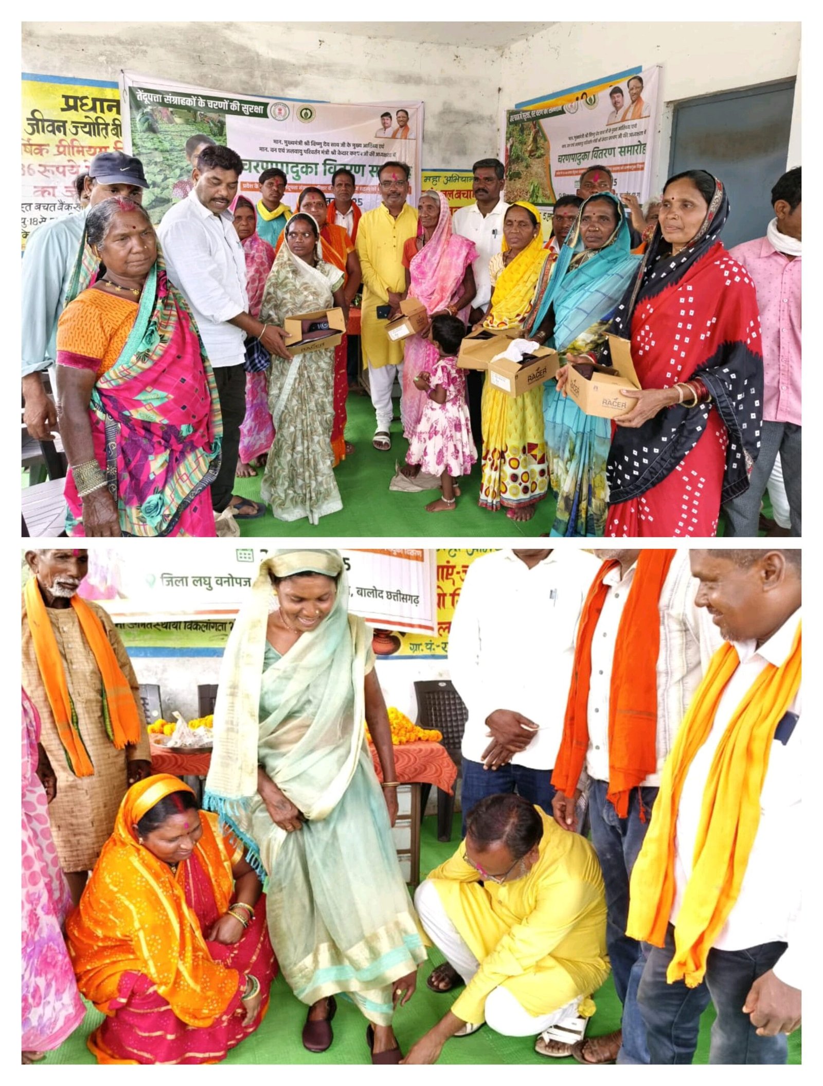 मुख्यमंत्री विष्णुदेव साय की तेंदुपत्ता संग्रहणकर्ता महिलाओं सौगात भाजपा नेता संजय बैस के हाथों मिला चरण पादुका।