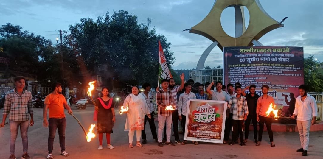 भास्कर न्यूज/वीरेन्द्र भारद्वाज/दल्लीराजहरा । प्रदेश युवा कांग्रेस के अध्यक्ष आकाश शर्मा के आदेश एवम एवं युवा कांग्रेस डोंडी लोहारा विधानसभा अध्यक्ष भरत देवांगन के मार्गदर्शन में दल्ली राजहरा युवा कांग्रेस अध्यक्ष अयान अहमद के नेतृत्व में बालौदा बाजार हिंसा में कांग्रेस विधायक देवेन्द्र यादव, युवा कांग्रेस जिला अध्यक्ष शैलेन्द्र बंजारे, NSUI विधानसभा अध्यक्ष सुर्यकांत वर्मा, अजित कोशेले व युवा कांग्रेस, NSUI के कार्यकर्ताओं व सतनामी समाज के सथियों को झूठे केस में फसाकर जेल भेजे जाने व पिछले कई महीनों से उन्हे व उनके परिवार वालों को जबरन परेशान करने व मानसिक रूप से प्रताड़ित करने के विरोध में दल्ली राजहरा युवा कांग्रेस द्वारा मशाल रैली निकालकर विरोध प्रदर्शन किया गया। जिसमे बड़ी संख्या में कांग्रेस एवम युवा कांग्रेस कार्यकर्ता उपस्थित थे। इसमें प्रमुख रूप से दल्ली राजहरा नगर पालिका पूर्व उपाध्यक्ष रवि जायसवाल, डोंडी लोहारा विधानसभा अध्यक्ष युवा कांग्रेस भरत देवांगन, अल्पसंख्यक बालोद जिला अध्यक्ष जुबैर अहमद , अल्पसंख्यक प्रदेश सचिव ज़ेबा कुरैशी, ब्लॉक कांग्रेस कमेटी ईश्वर राव, अल्पसंख्यक बालोद जिला उपाध्यक्ष तंजीला खान, युवा कांग्रेस प्रदेश महासचिव शालिनी रामटेके , दल्ली राजहरा युवा कांग्रेस नगर अध्यक्ष अयान अहमद,युवा नेता हेमंत पटेल,नीरज साहू,दनेश आर्य ,मुकेश पटेल,नितिन लुल्ला, लोकेश साहू ,मोहन्ती,नवीन साहू,जगजोत तुली, नंदू तालिब,दिनेश ,लक्की, कुणाल साहू , विनय साहू, राज साहू ,फरहान,जीवन राजपूत एवं बड़ी संख्या में युवा कांग्रेस कार्यकर्ता उपस्थित थे।