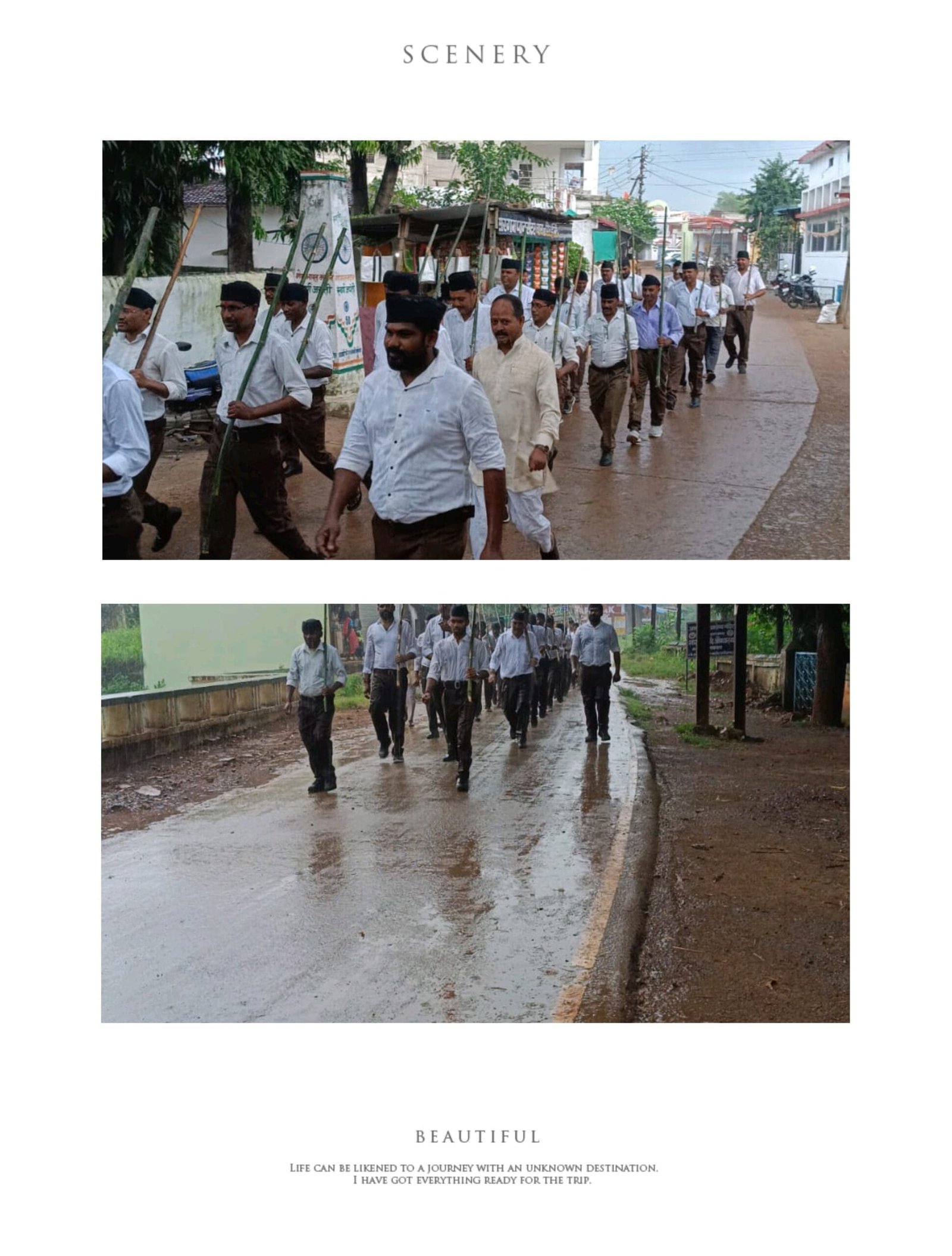 राष्ट्रीय स्वयं सेवक संघ के 100 वर्ष पूर्ण होने पर भाजपा मंडल कुसुमकसा में आयोजित पथ संचालन बरसते तेज पानी में हुआ संपन्न।