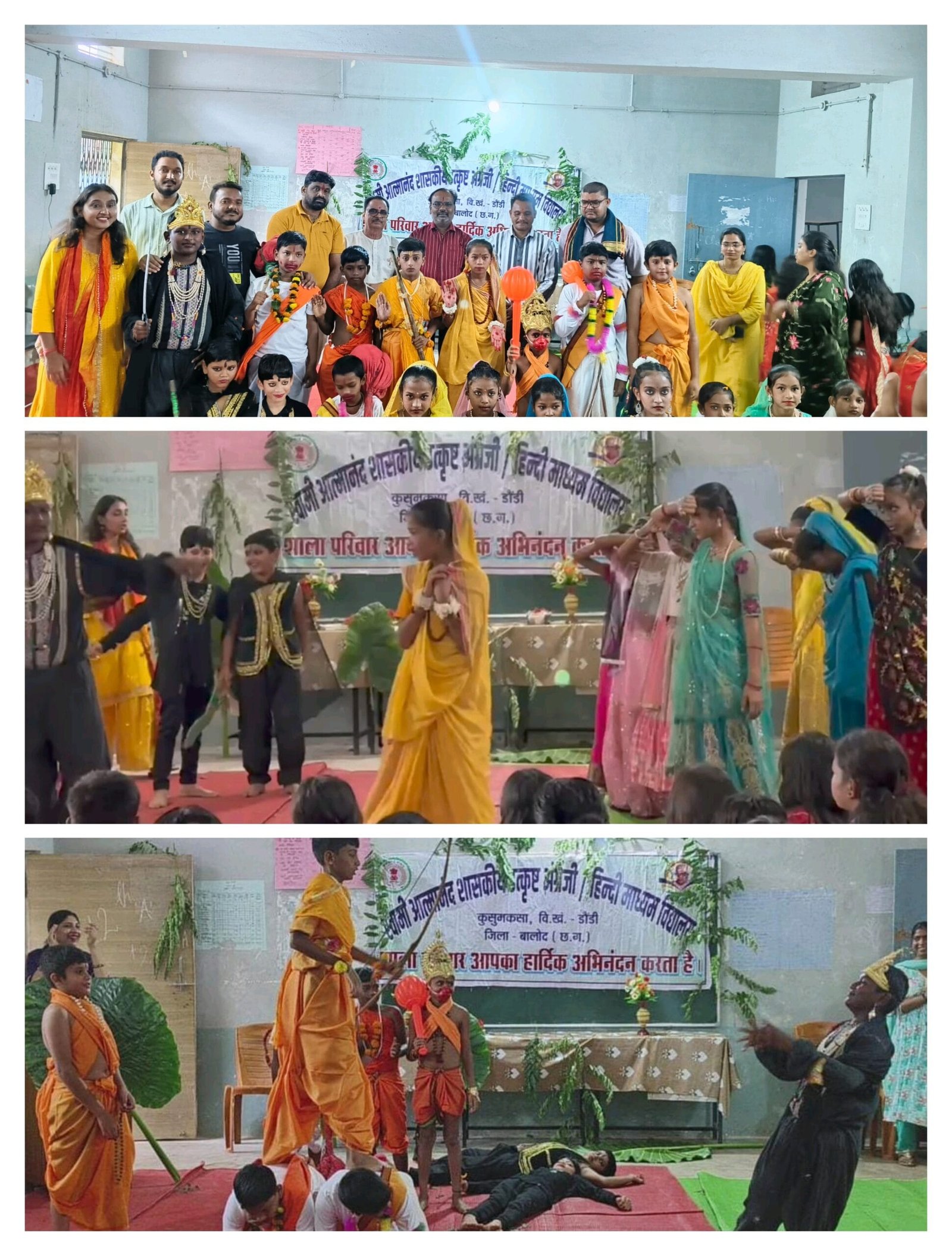 प्राचार्या सुनीता यादव ने कहा कि रामलीला के वजह से एक पूरा समाज की सामाजिक व्यवस्था चलती है जो समाज के प्रत्येक अंग को पोषित तथा विकसित करती है , इसलिए इस डिजिटल तथा वैश्विक युग में हमें इन मूल्यों को जिंदा रखना होगा।व्याख्याता तामसिंग पारकर ने बताया कि आज सबसे बड़ी चुनौती है कि लोगों को घर से बाहर निकाल कर रामलीला देखने को प्रेरित कैसे किया जाए ? इसकी शुरुआत शाला से बेहतर और कोई मंच नहीं है। रामलीला का स्वतंत्रता संग्राम में भी बड़ा महत्वपूर्ण योगदान रहा है, यह राष्ट्रीय एकता का जागरण और सामाजिक चेतना के जागृत करने का महत्वपूर्ण स्थान माना जाता था। राम रावण युद्ध को अक्सर भारतीयों के स्वतंत्रता संघर्ष और ब्रिटिश साम्राज्य के खिलाफ संघर्ष का प्रतीक माना गया। रामलीला ने विभिन्न वर्गों और समुदायों को एक साथ लाने में महत्वपूर्ण भूमिका निभाई। डॉ नसीम खान ने शाला के शिक्षकों और छात्रों के प्रयासों को बुराई पर अच्छाई की जीत बताते हुए कहा कि भारतीय संस्कृति और धर्म महान है, उन्हें पश्चिमी प्रभाव से कमजोर नहीं होने देना चाहिए। कार्यक्रम का संचालन व्याख्याता रानू सोनी तथा पूजा रात्रि ने किया। इस अवसर पर समस्त शिक्षक गण सोनल गुप्ता ,आमोद त्रिपाठी ,शिवम गुप्ता, प्रियंका सिंह, शेष कुमार कोसमा , नदीम खान,त्रिशला नोनहरे भावना यादव ,यामिनी नेताम, यशेष रावते आदि उपस्थित थे।