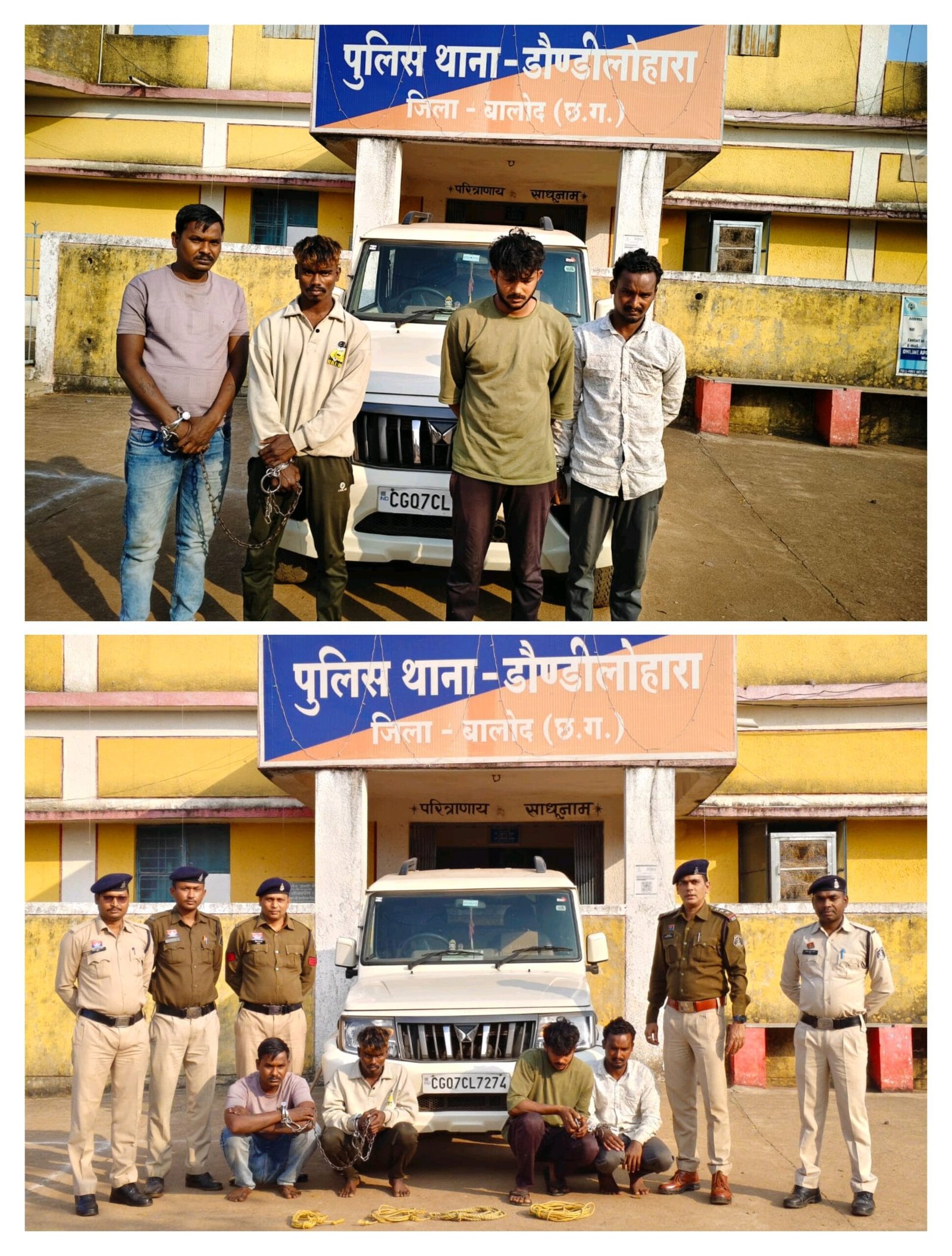 मामले का संक्षिप्त विवरण इस प्रकार है कि प्रार्थी गामा नेताम पिता स्व. रमेश नेताम उम्र 22 साल जाति देवार निवासी वार्ड नंबर 11 अम्बेडकर पारा डौण्डी लोहारा जिला बालोद(छ.ग.) ने रिपोर्ट दर्ज करया कि दिनांक 02.01.2026 को हमारे सुवर दिखाई नही देने पर आसपास में खोजबीन किये लेकिन सुवर नही मिला तब हम लोग अरिहंत किराना दुकान डौण्डी लोहारा के विडियो फुटेज को देखे तो दिनांक 23.12.2025 को एक सफेद कलर के बोलेरो वाहन में डौण्डी लोहारा के बाजार पारा में किसी अज्ञात व्यक्तियो के द्वारा हमारे सुवर को दौड़ा दौड़ा कर पकड़ कर चोरी कर वाहन में भर रहे थे इसी दिनांक 23.12.2025 को रात्रि में बस स्टैण्ड डौण्डी लोहारा के पास एक सफेद कलर के बोलेरो वाहन को देखा था तब विडियो फुटेज के आधार पर आसपास के लोगो से पूछताछ कर पता किया तो पता चला कि उक्त बोलेरो वाहन का नंबर सीजी 07 सी.एल 7274 है इसी वाहन के चालक एवं इनके अन्य साथियो के द्वार दिनांक 22,23.12.2025 के रात्रि करीबन 02 से 03 बजे के बीच हमारे लगभग 14-15 नग छोटा बड़ा सुवर को चोरी कर ले गया है, कि प्रार्थी की रिपोर्ट पर अपराध पंजीबद्ध कर विवेचना में लिया गया था। दिनांक 14.02.26 को प्रकरण में विवेचना के दौरान बोलेरो वाहन का नंबर सीजी 07 सी.एल 7274 के चालक एवं मालिक पंकज देशमुख निवासी ग्रांम थनौद जिला दुर्ग से पूछताछ करने पर बताया कि दिनांक 22.12.25 को इसके साथी अजय देवराज, अरूण नेताम एवं अन्य साथियों के द्वारा योजना बनाकर तीन-चार रस्सी, जाली, सुवर चोरी करने के लिए पकड़े थे, हम लोग उक्त बेलोरो वाहन मे बैठे वहां से पाटेश्वर धाम आये वहां आसपास घुमें और शराब पीते सभी लोग घुमते हुए करीबन 1-2 बजे रात्रि डौण्डीलोहारा में पहुंचे तो बाजार चौक डौण्डीलोहारा में बहुत सारे सुवर को घुमते हुये देखा तो तुलेष नेताम, अजय देवराज, अरूण नेताम अपने अन्य साथियों के द्वारा बोलेरो से उतर कर सुवर को प्लास्टिक पीला, कलर का रस्सी, जाली से फंदा बनाकर दौडा दौडाकर पकडे और बोलेरो में भर दिये , इसी तरह दिनांक 23.12.2025 को उक्त बोलेरो में सभी लोग बैठ कर रात्रि में करीबन 01 से 02 बजे डौण्डी लोहारा बाजार चौक आकर सुवर को रस्सी का फंदा, जाली बनाकर फिर से पकड़ कर चोरी कर बोलेरो वाहन में रखे और बोलेरो वाहन से सुवर को अपने घर अटल निवास उरला दुर्ग में छोड़े थे उक्त आरोपियों के द्वारा सभी सुवर को आपस में बाट कर, काटकर मार्केट में बिक्री किये है बिक्री रकम को आपस में बाट लिये है आरोपी तुलेश नेताम एवं उसके साथियों से पीले रंग का तीन नग लंबा रस्सी एवं 1600 रूपये नगद बिक्री रकम बरामद कर जप्त किया गया है तथा सुवर बिक्री रकम से 32,000 रूपये का विवो मोबाईल फोन खरीदा था जिसे जप्त किया गया है आरोपी पंकज देशमुख से घटना में प्रयुक्त बोलेरो वाहन क्रमांक सीजी 07 सी.एल 7274 को विधिवत जप्त किया गया है। प्