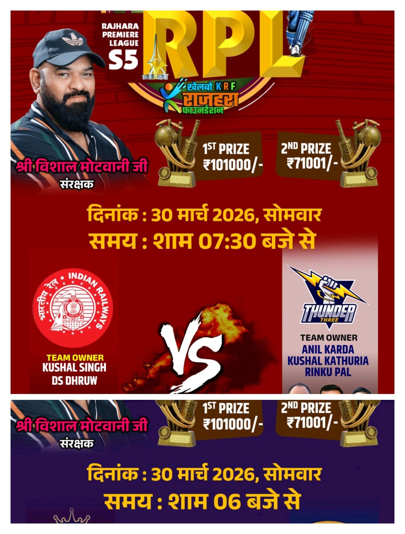 लौह अयस्क नगरी के प्रमुख आकर्षणों में से एक रात्रिकालीन टेनिस बॉल क्रिकेट टूर्नामेंट राजहरा प्रीमियर लीग का भव्य आयोजन 30 मार्च से खेलबो राजहरा फाउंडेशन की ओर से बीएसपी क्रिकेट स्टेडियम में किया जा रहा है ।